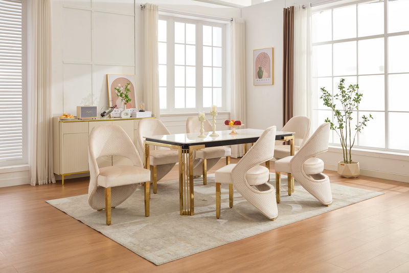 Rose 160cm Cream Marble Dining Table + Porado Cream And Gold Dining Chairs
