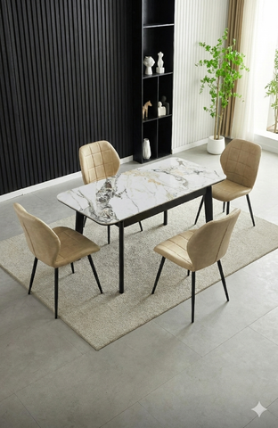 Arizona Extending Cream Gold Ceramic Table With Oliver Chairs Sale