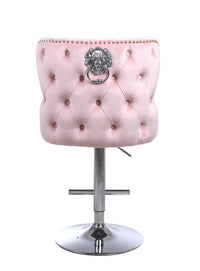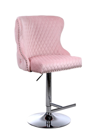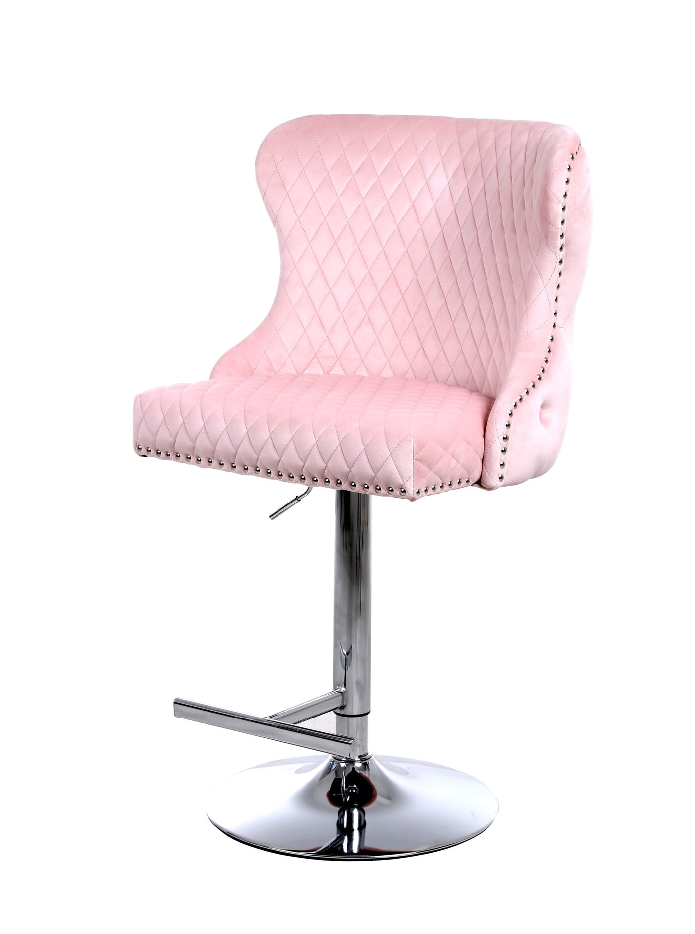 Elevate your home bar with this charming pink velvet bar stool! Its plush seating and elegant design provide a comfortable and stylish perch for any occasion. The adjustable height and swivel feature ensure perfect positioning and effortless conversation. This stool is a delightful blend of playful charm and practical sophistication, ready to add a pop of color to your space.