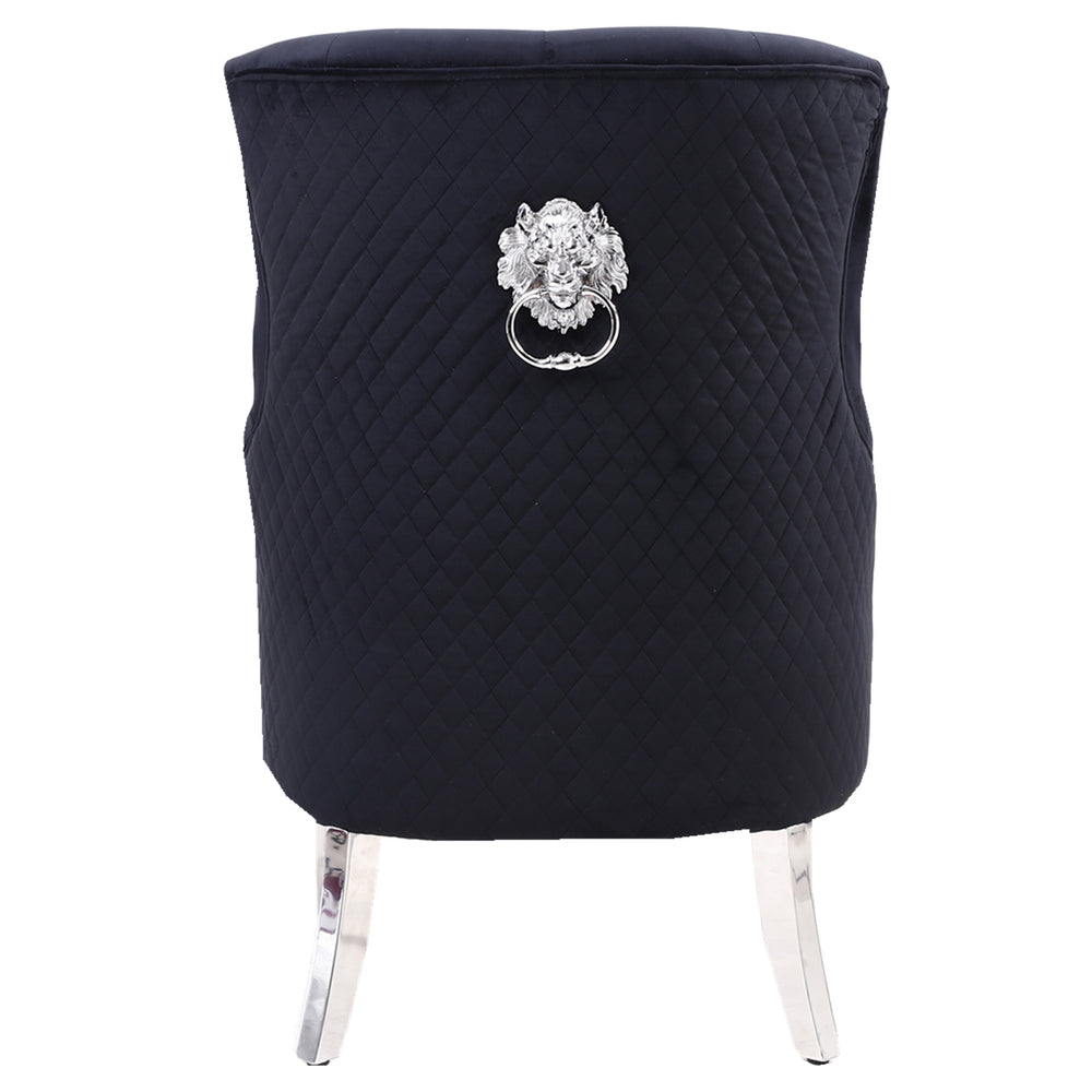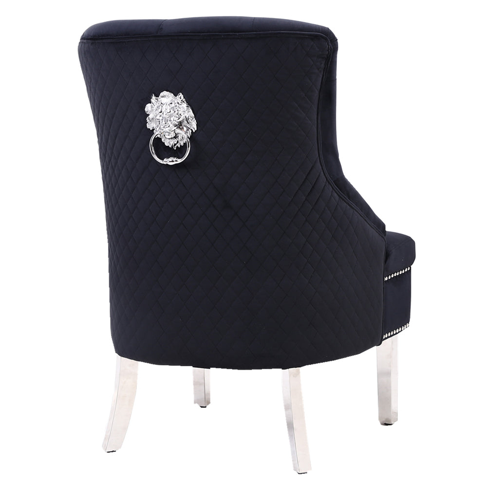 Add a touch of regal elegance to your home with this stunning black wing chair. Its classic design and plush upholstery make it a perfect statement piece for any room. Sink into its comfortable embrace and enjoy a moment of pure relaxation. This chair isn't just furniture; it's an experience waiting to happen.