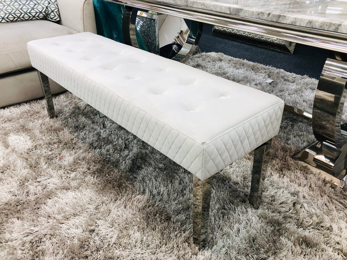 Majestic Silver Bench: Elegant Tufted Seating for Dining Rooms and Hallways Sale
