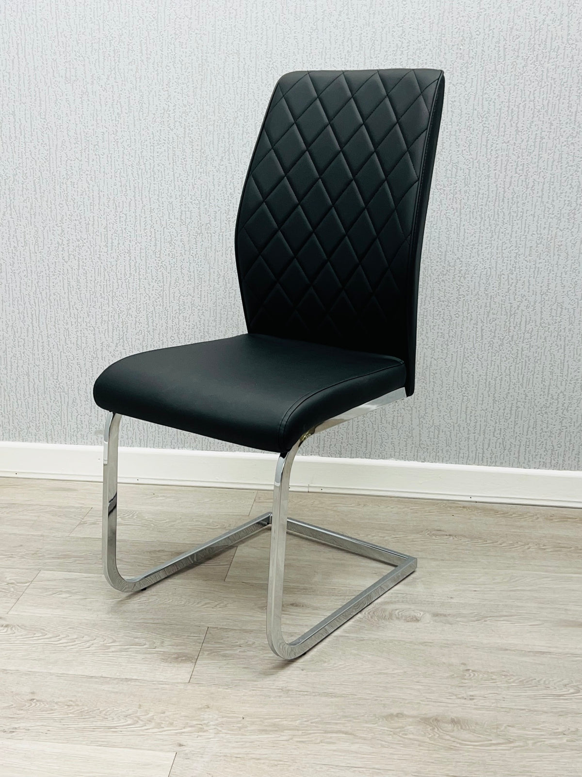 Sink into sublime comfort with the Atlantis Black PU Dining Chair, a chic addition to any modern dining space. Its elegant quilted backrest and sleek chrome cantilever base offer both exceptional style and sturdy support. Perfect for family meals or entertaining, these chairs are designed to elevate your dining experience. Please note, a minimum order of two chairs applies to ensure your dining area is perfectly coordinated.