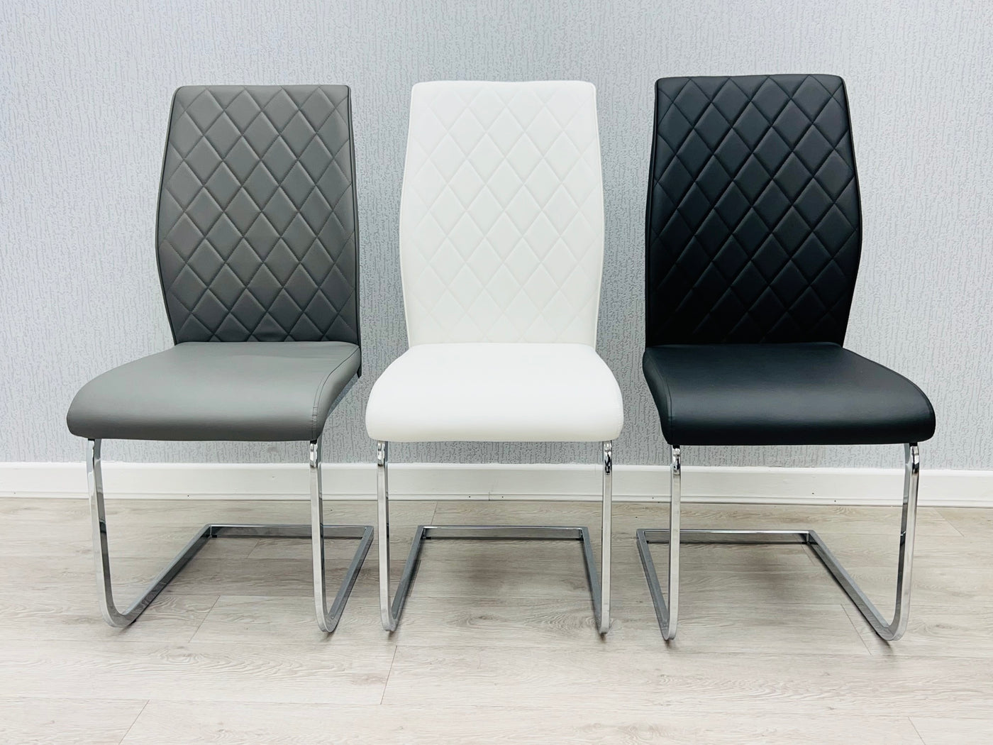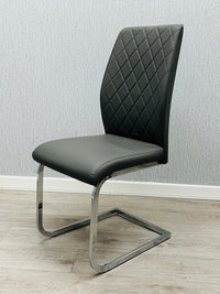 Elevate your dining space with the sleek Atlantis Grey PU Dining Chair, a perfect blend of modern design and comfort. Its chic grey faux leather and striking chrome-effect frame effortlessly complement any contemporary interior. Enjoy supreme support with the subtly padded seat and back, designed for delightful dinner parties or casual family meals. This stylish chair is sold in sets of two, ensuring your dining area is perfectly coordinated and ready for guests.