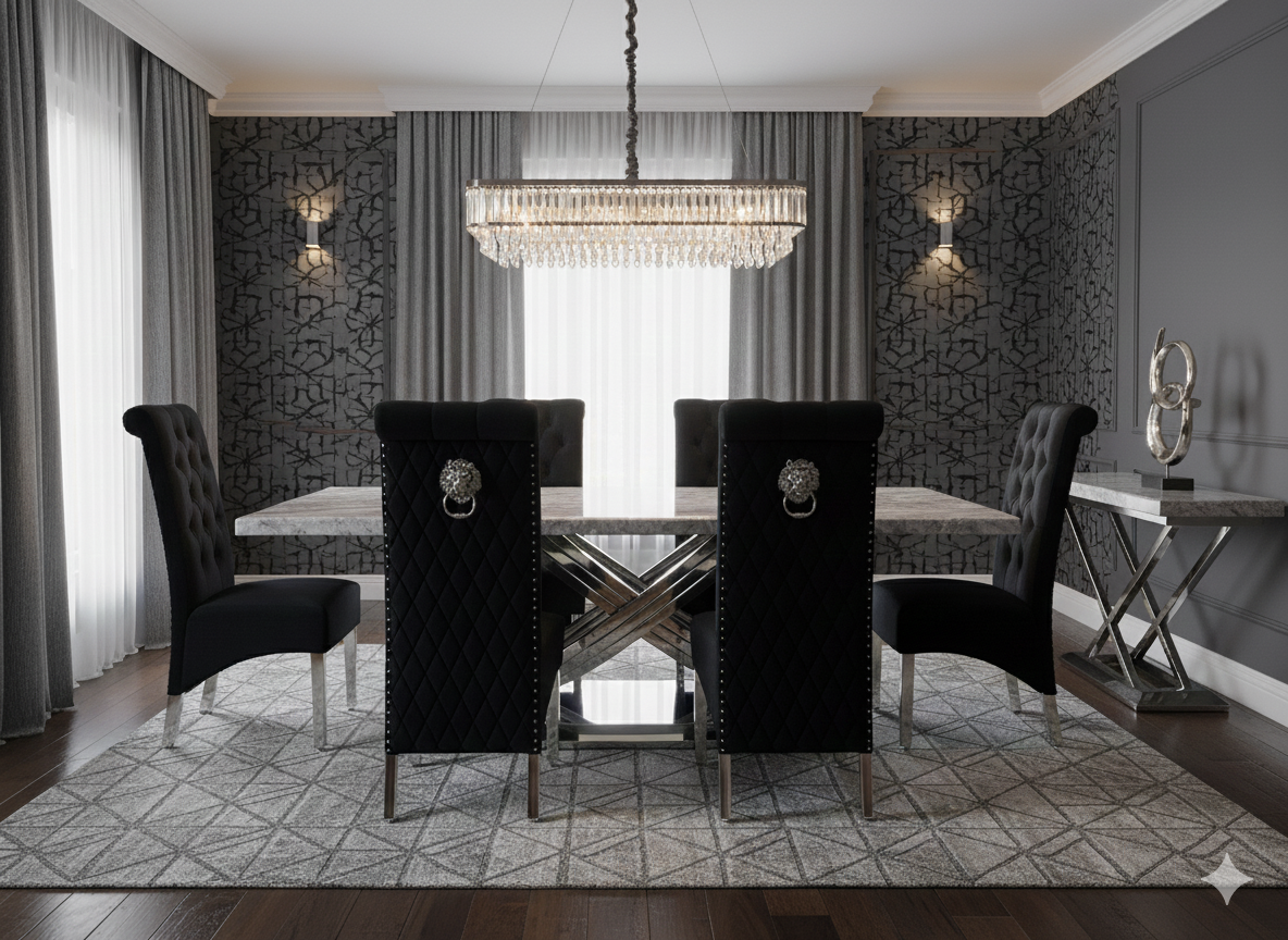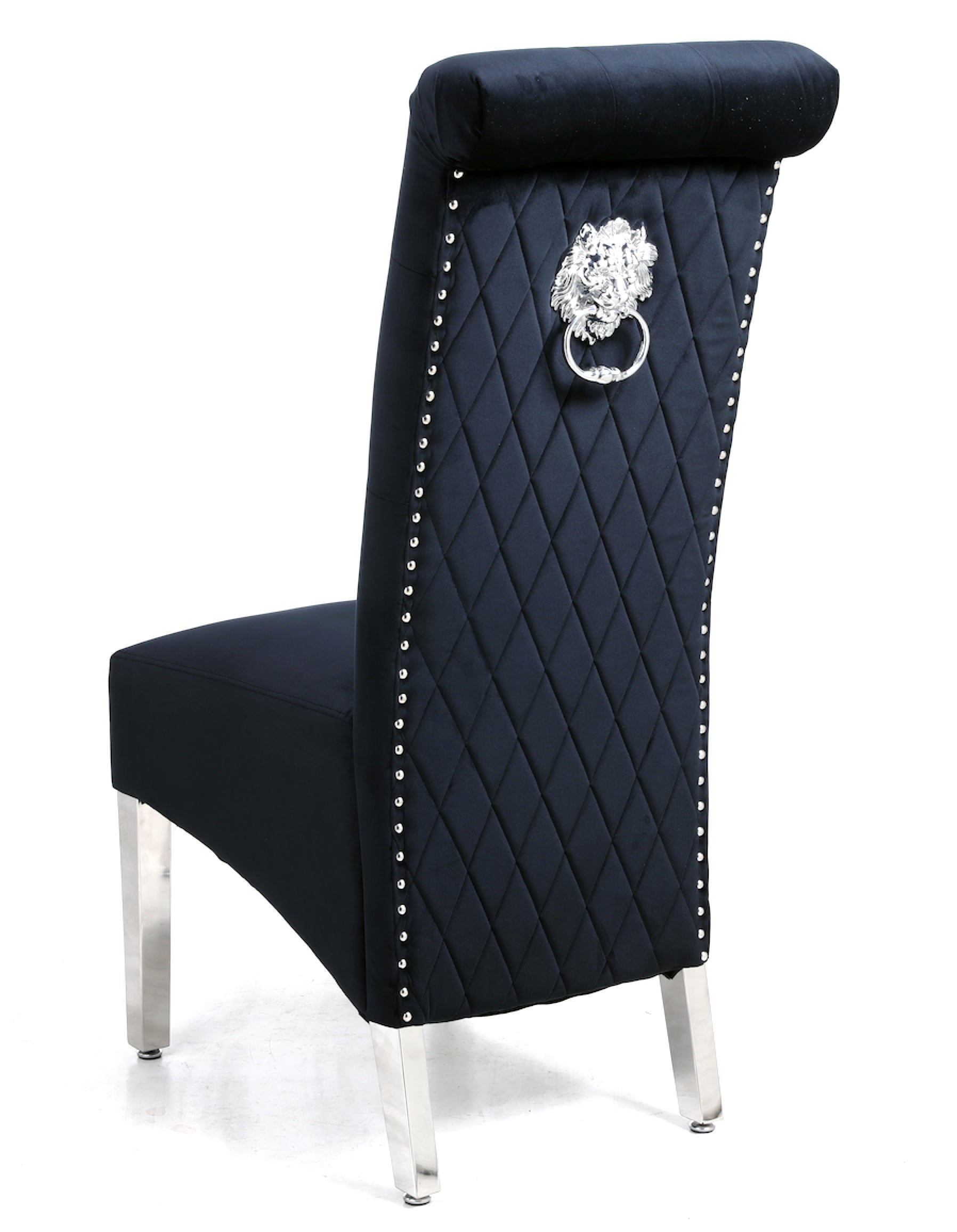 Luxurious Black Chrome Leg Dining Chair with Lion Knocker Luxurious Black Chrome Leg Dining Chair with Lion Knocker