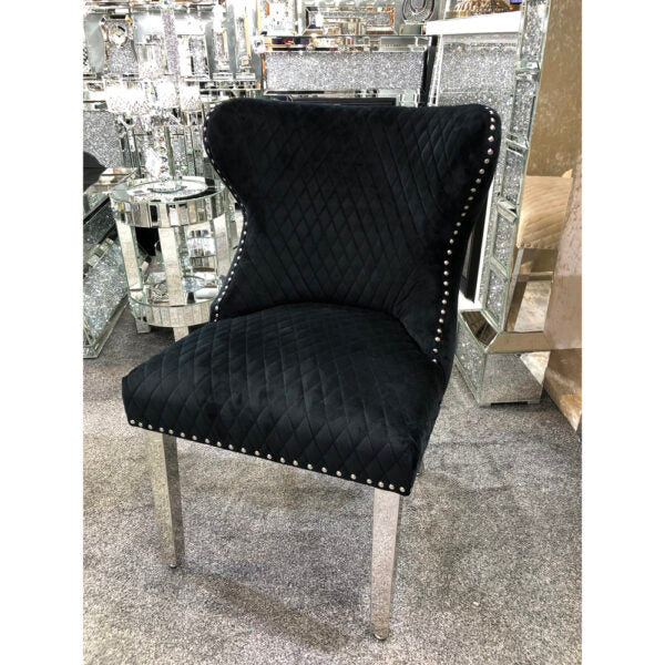 Indulge in the plush comfort of the Valentino Black Velvet Dining Chair, a true statement piece for your dining area. Its sleek black velvet upholstery and elegant design will elevate any meal into a sophisticated affair. Built with a sturdy frame, this chair promises both durability and a touch of glamour. Prepare to dine in style and comfort, making every moment at the table a luxurious experience.