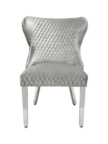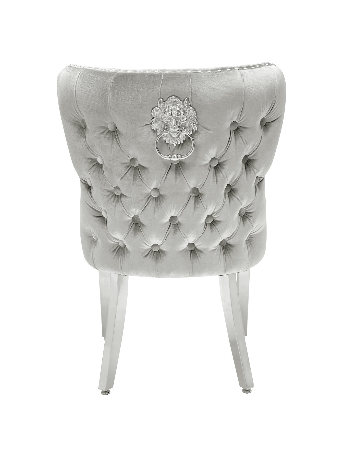 Add a touch of playful elegance to your dining space with this stunning brushed silver dining chair. Its sleek design and comfortable build make it perfect for long, joyful meals with loved ones. Crafted for durability, this chair promises to be a cherished addition to your home for years to come. Elevate your dining experience with this charming and chic seating solution.