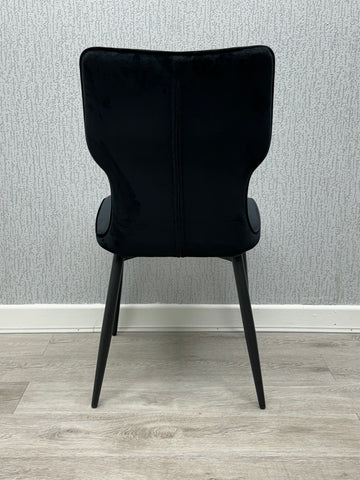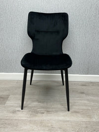 Step into a world of sophisticated comfort with the Windsor Black Velvet Chair. Its plush black velvet fabric and sleek black metal frame combine for an effortlessly chic look. This chair is designed to add a touch of modern elegance to your dining space, perfect for stylish gatherings. Enjoy both comfort and contemporary design with this delightful seating choice.