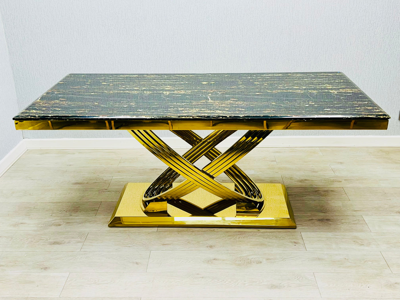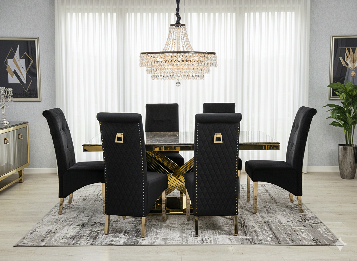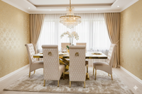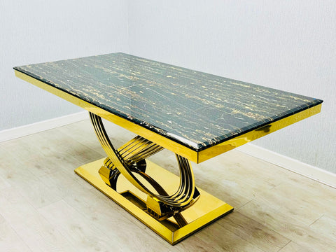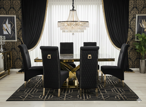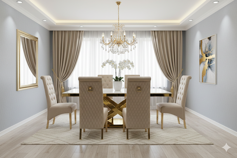 Discover the Elina Cream and Gold Marble Dining Table, a truly dazzling centerpiece for your dining space. Its luxurious cream marble top pairs perfectly with the radiant golden pedestal base, creating an ambiance of pure elegance. Gather your favorite people around this magnificent table for unforgettable meals and sparkling conversations. Crafted for both beauty and durability, it's ready to elevate your home with its sophisticated charm.