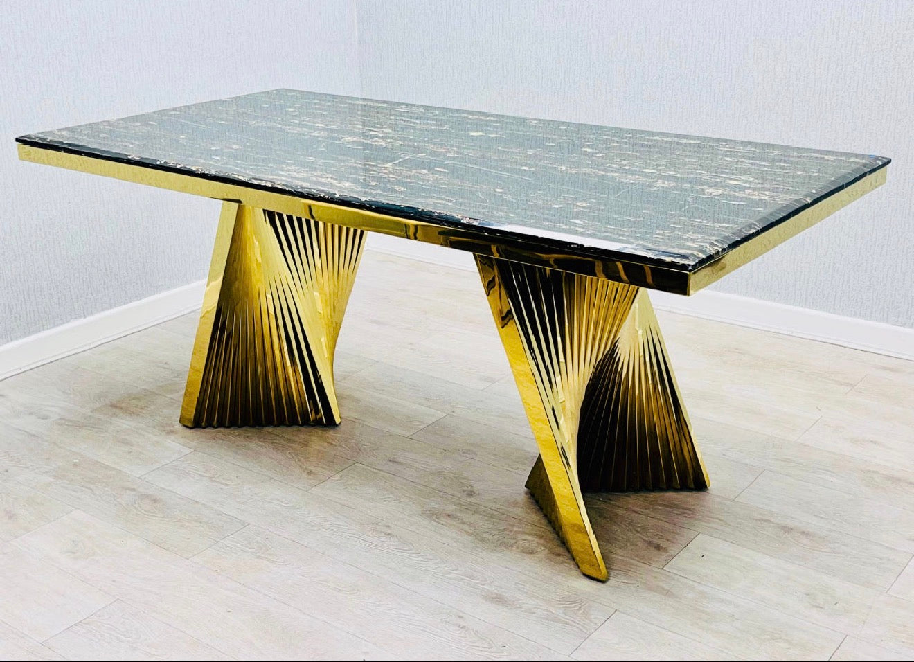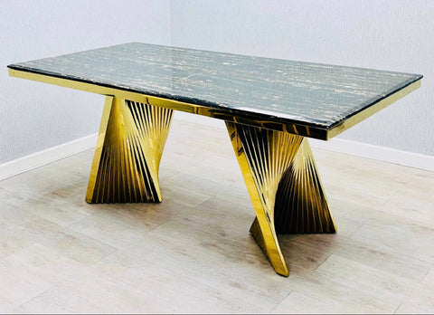 Rocco 180cm Black And Gold Dining table With Victoria Black And Gold Dining chairs Lion Knocker Sale