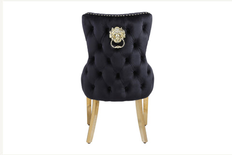 Rocco 180cm Black And Gold Dining table With Victoria Black And Gold Dining chairs Lion Knocker - 1.8M + 4 Chairs