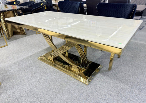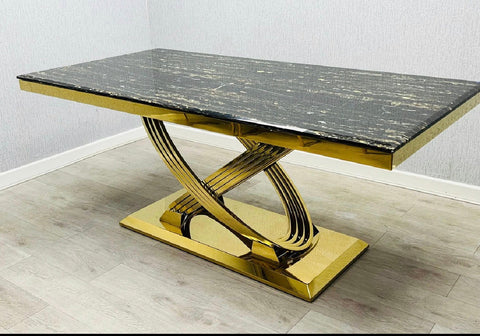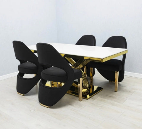 Rose Black and Gold Marble Dining Table + Santorini Black And Gold Dining Chairs - 1.6M + 4 Chairs