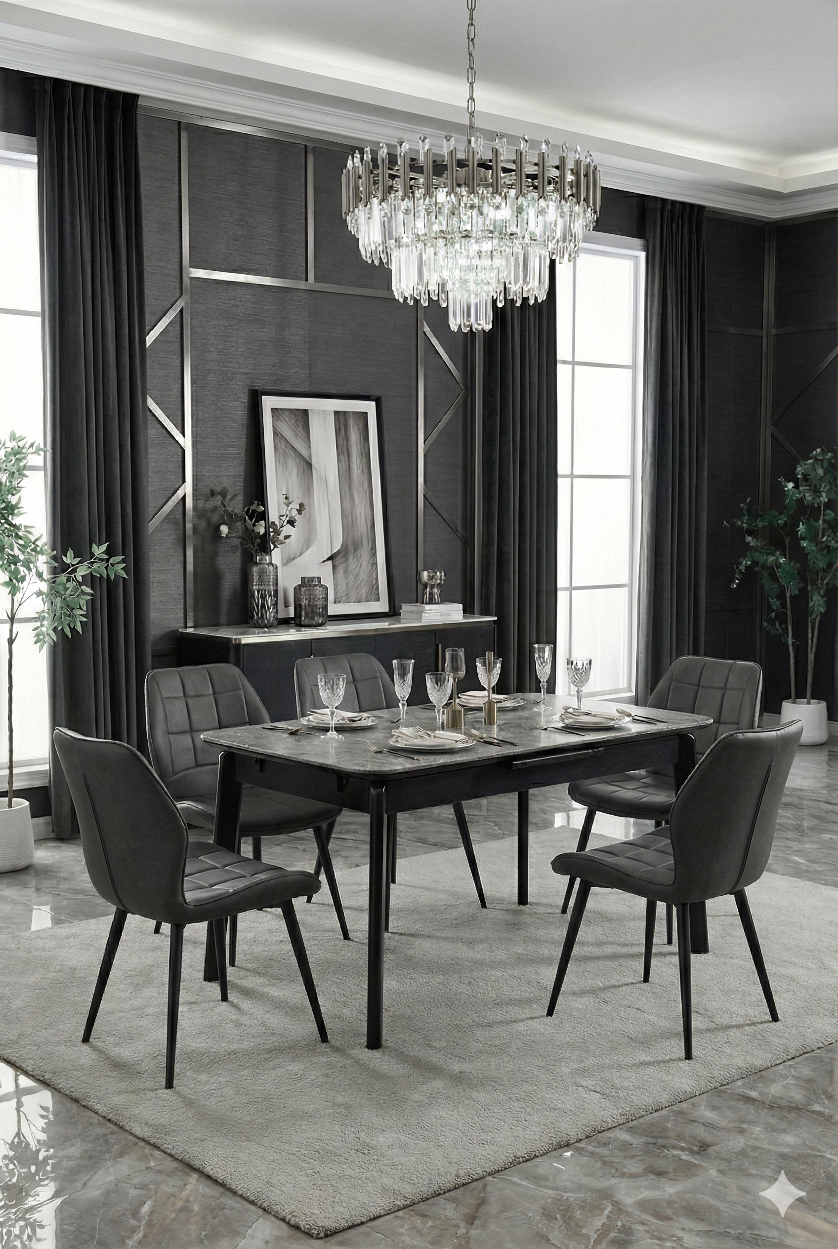 Arizona Extending Grey Ceramic Table With Oliver Chairs