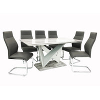 Transform your dining area into a sophisticated haven with this stunning marble-effect dining set. The spacious Georgia table paired with six comfortable Berlin chairs offers ample seating for family and friends. Its chic design adds a touch of class to any decor, making every meal a delightful experience. Gather 'round and make some memories!