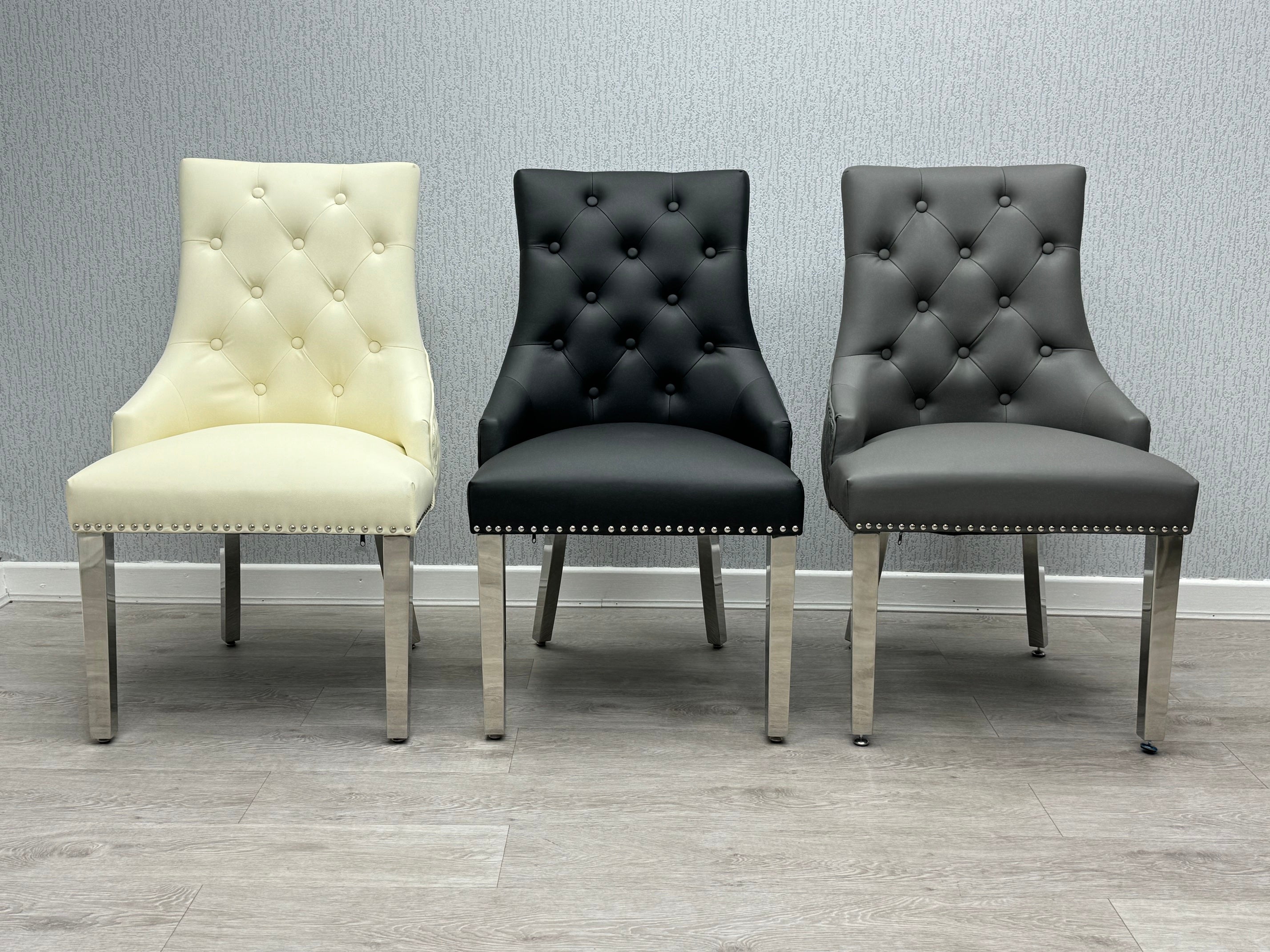Set Of 2 Majestic Black PU Dining Chair with Lion Knocker