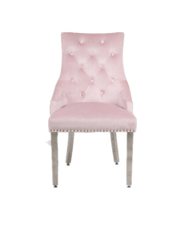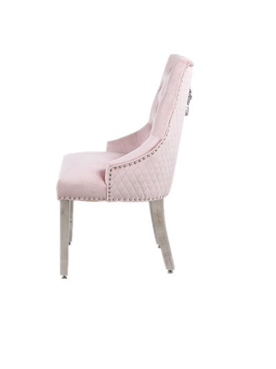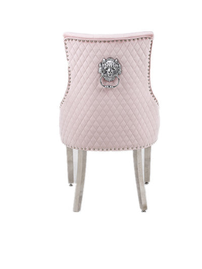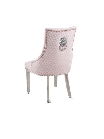 Add a touch of regal elegance to your home with this stunning dining chair. Wrapped in luxurious, soft quilted velvet, it features a majestic lion knockerback design and sleek chrome polished steel legs. The padded seating and curved backrest promise exceptional comfort, making it perfect for dining, living, or even bedroom spaces. This chair is built to last, offering both style and support.