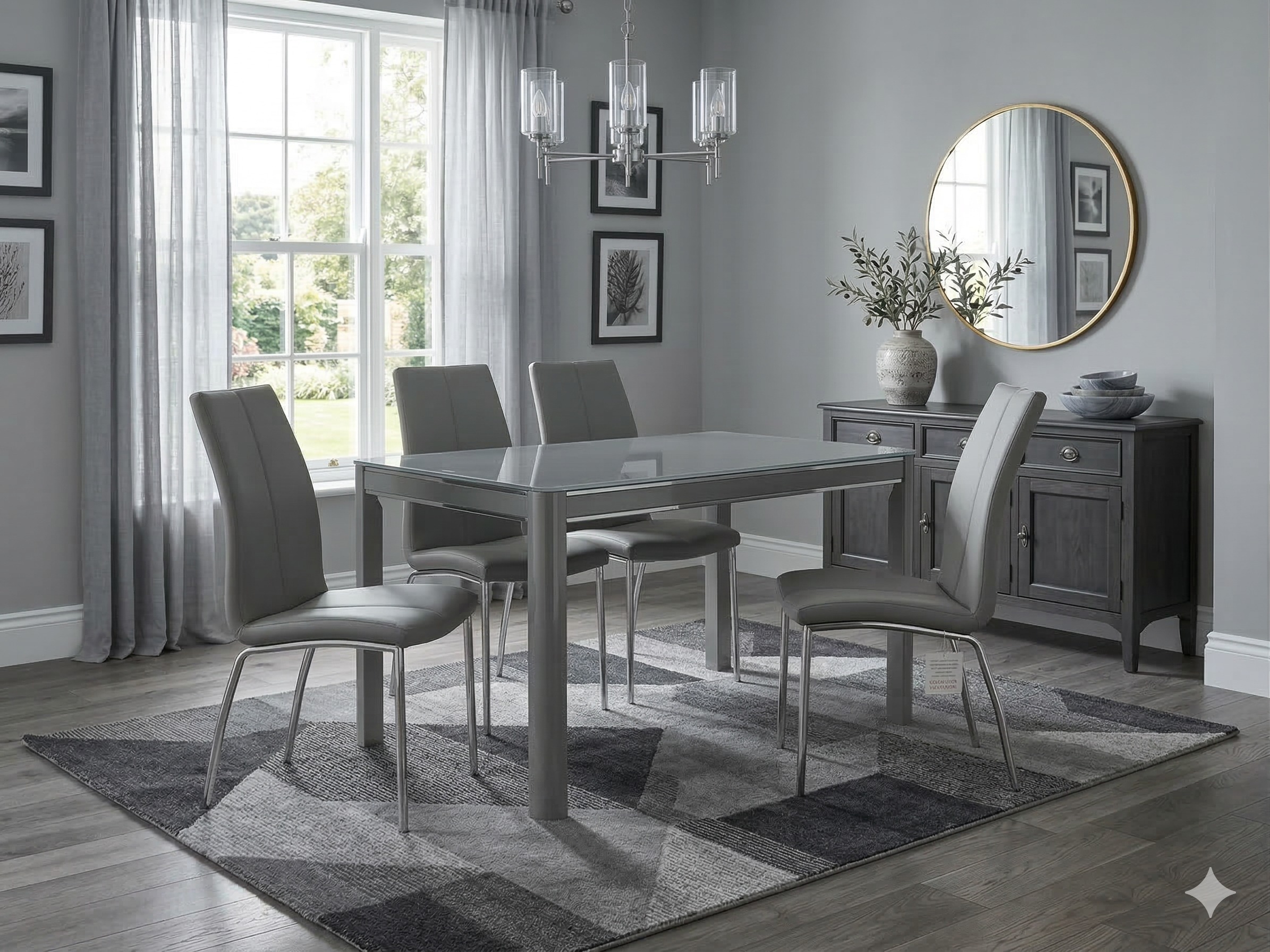 Grey Morano Dining Table with 4 Carlo Chairs