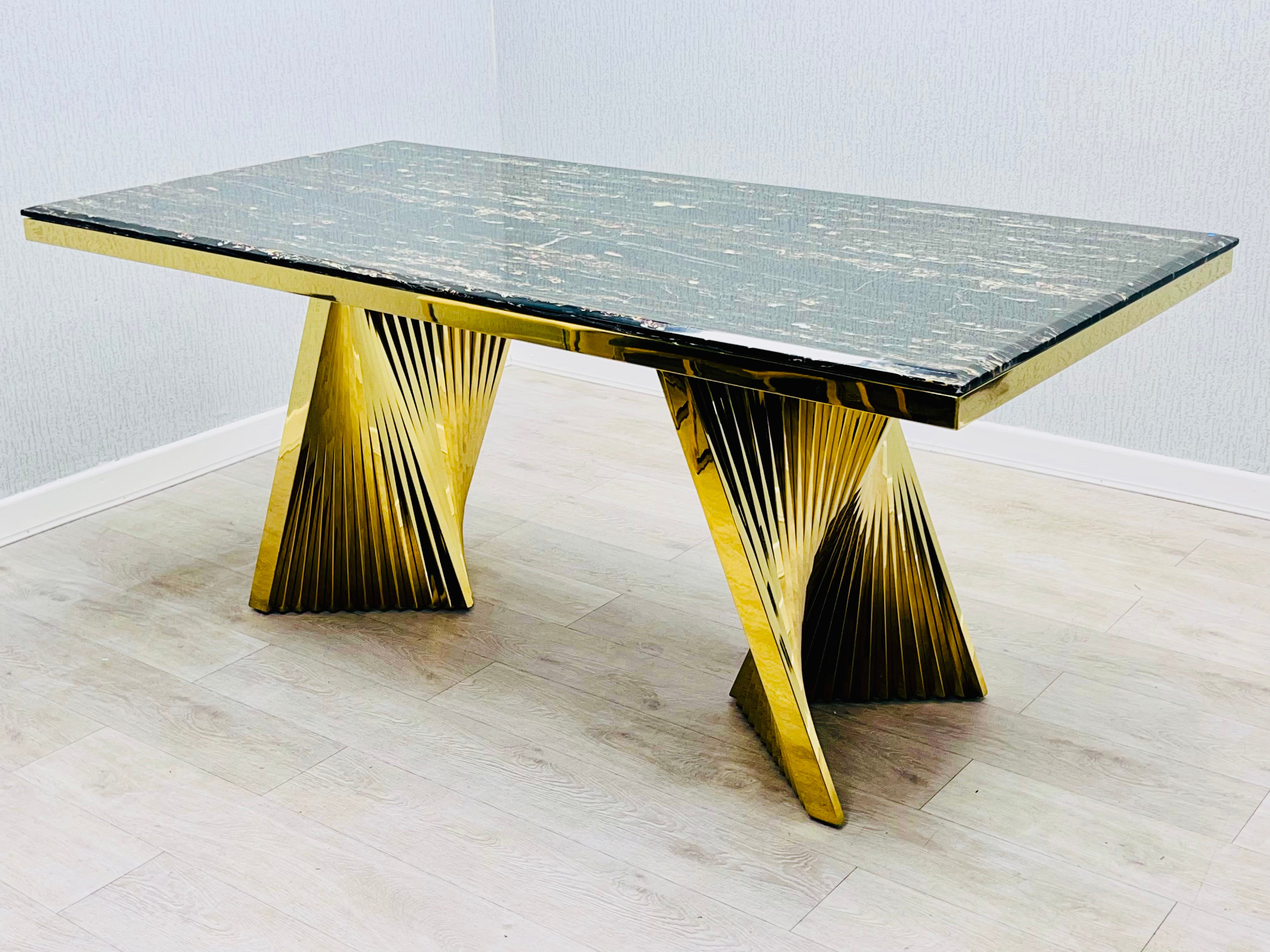 Ravello 180cm Gold Marble Dining Table