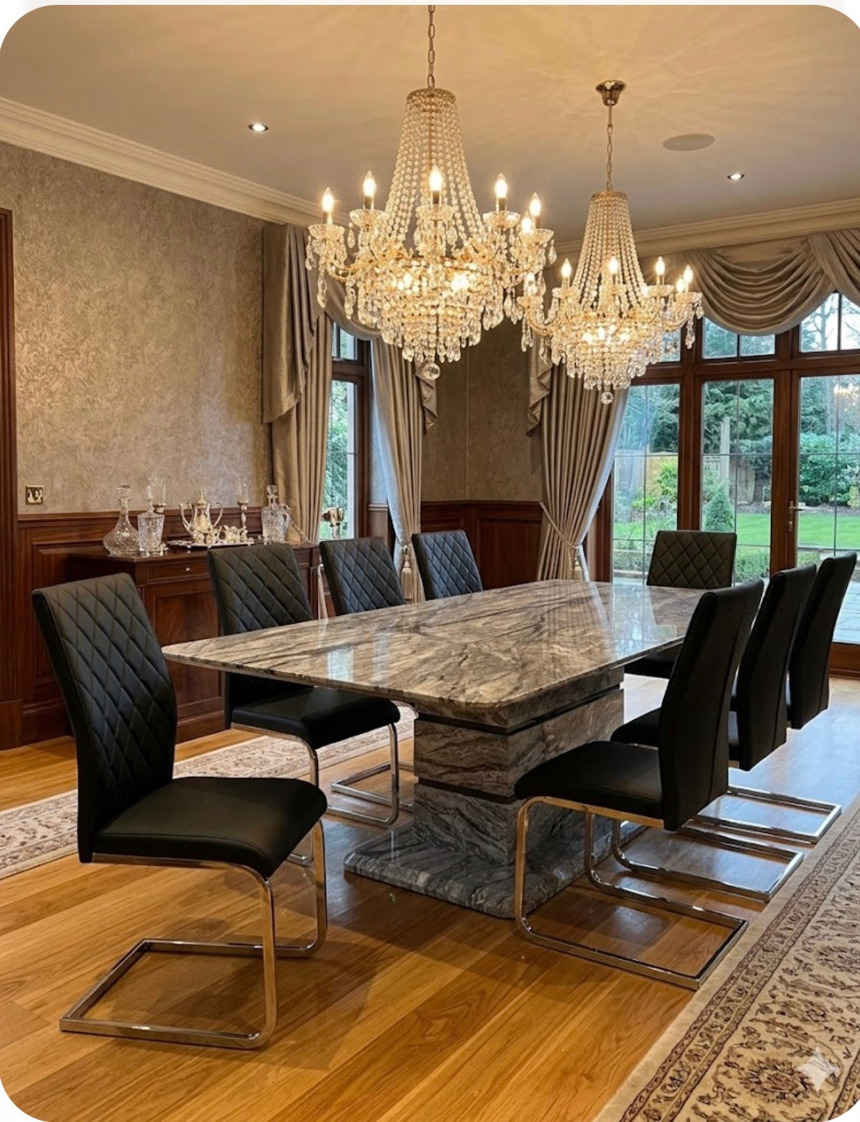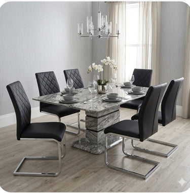 Roseberry Dining Set: Elegant Marble Effect Table with 6 Atlantis Black Chairs