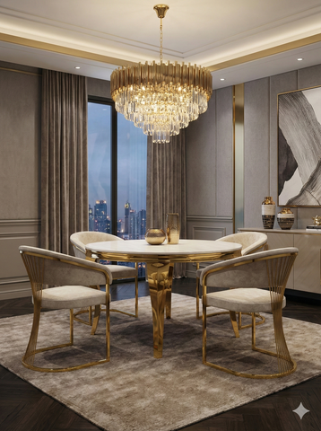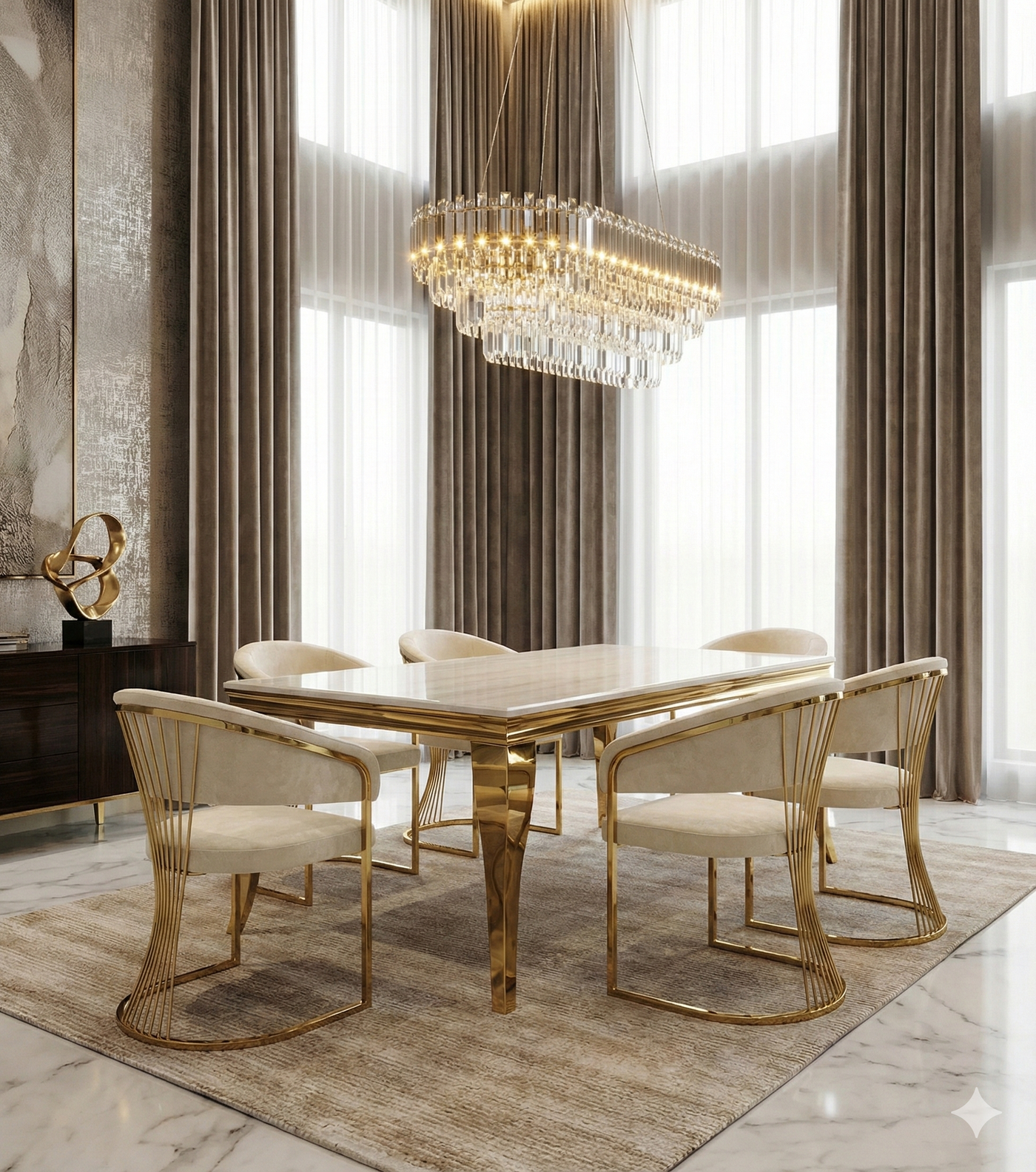 Sofia Cream Gold Marble Dining Table with Porado Chairs Sale