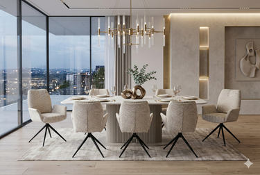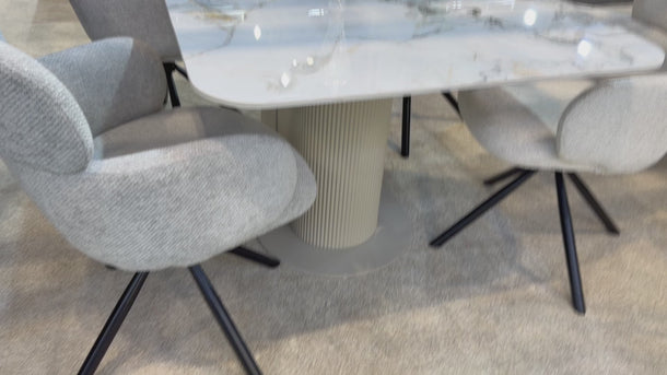 Sydney 160cm Cream Gold Ceramic Marble Dining Table With Fairmont Swivel Dining Chair