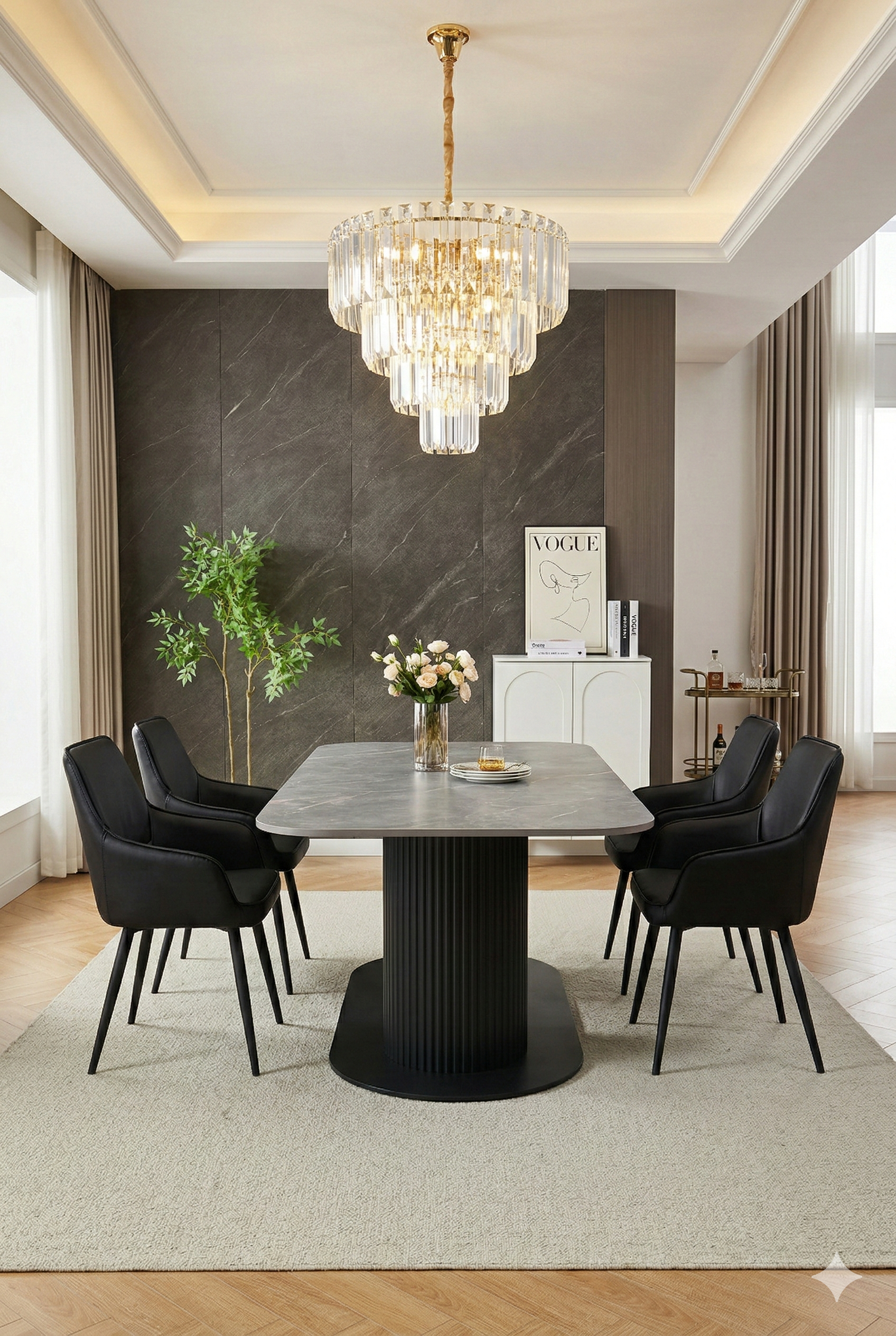 Sydney 160cm Grey Black Ceramic Marble Dining Table With Palermo Dining Chair