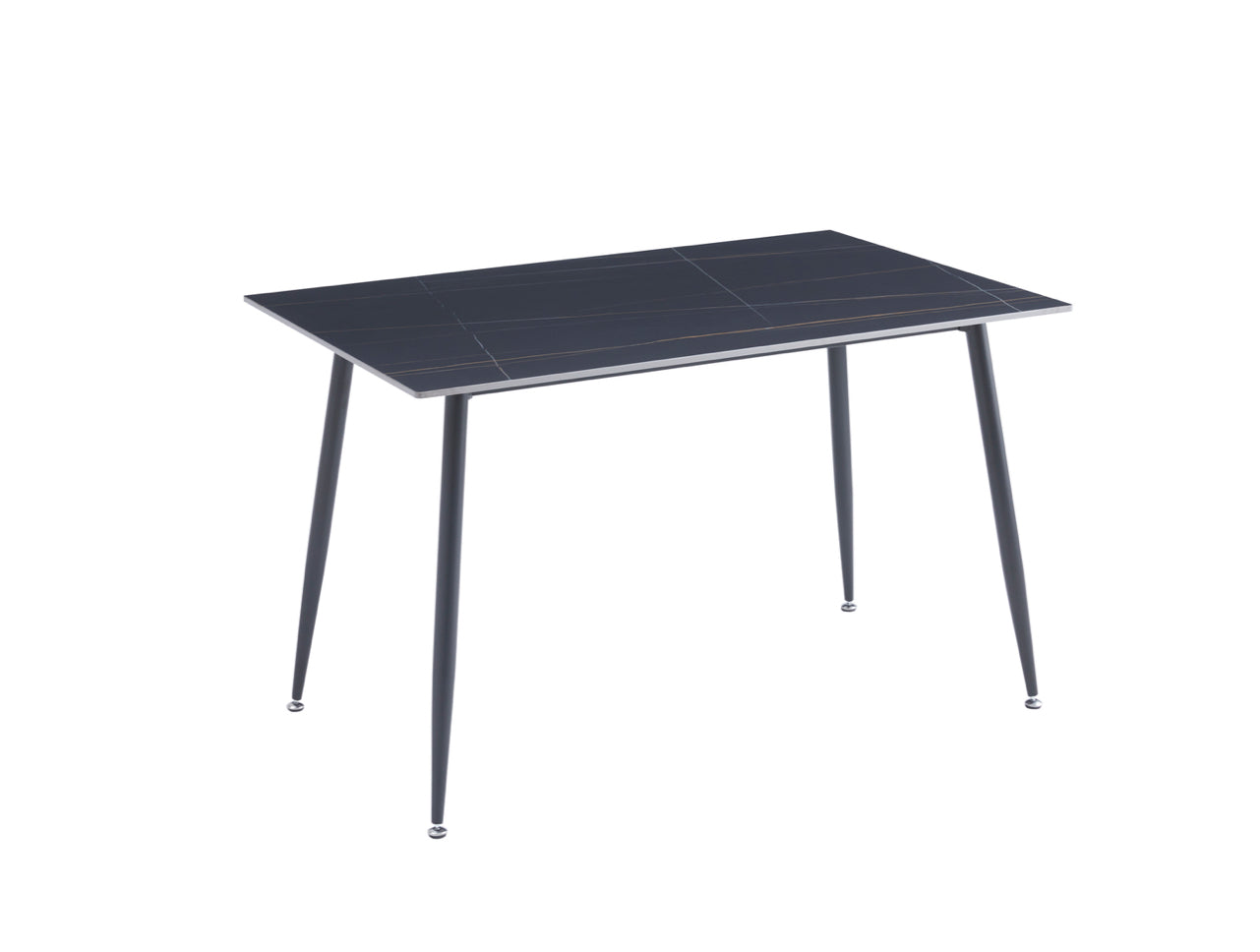 1.2M Oxford Ceramic Black Dining Table With 4 Black Dining Chairs Leather