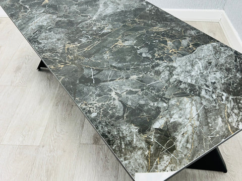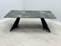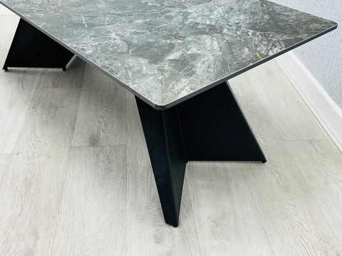 Add a touch of modern sophistication to your living space with this striking Chicago Black & Gold Ceramic Coffee Table. Its luxurious ceramic top, boasting a chic black and gold finish, offers exceptional durability and a sleek, contemporary look. Supported by a robust, artistically designed base, this table is both a functional centrepiece and a statement of style. Perfect for entertaining or simply enjoying a quiet cuppa, it elevates any room with its elegant presence.