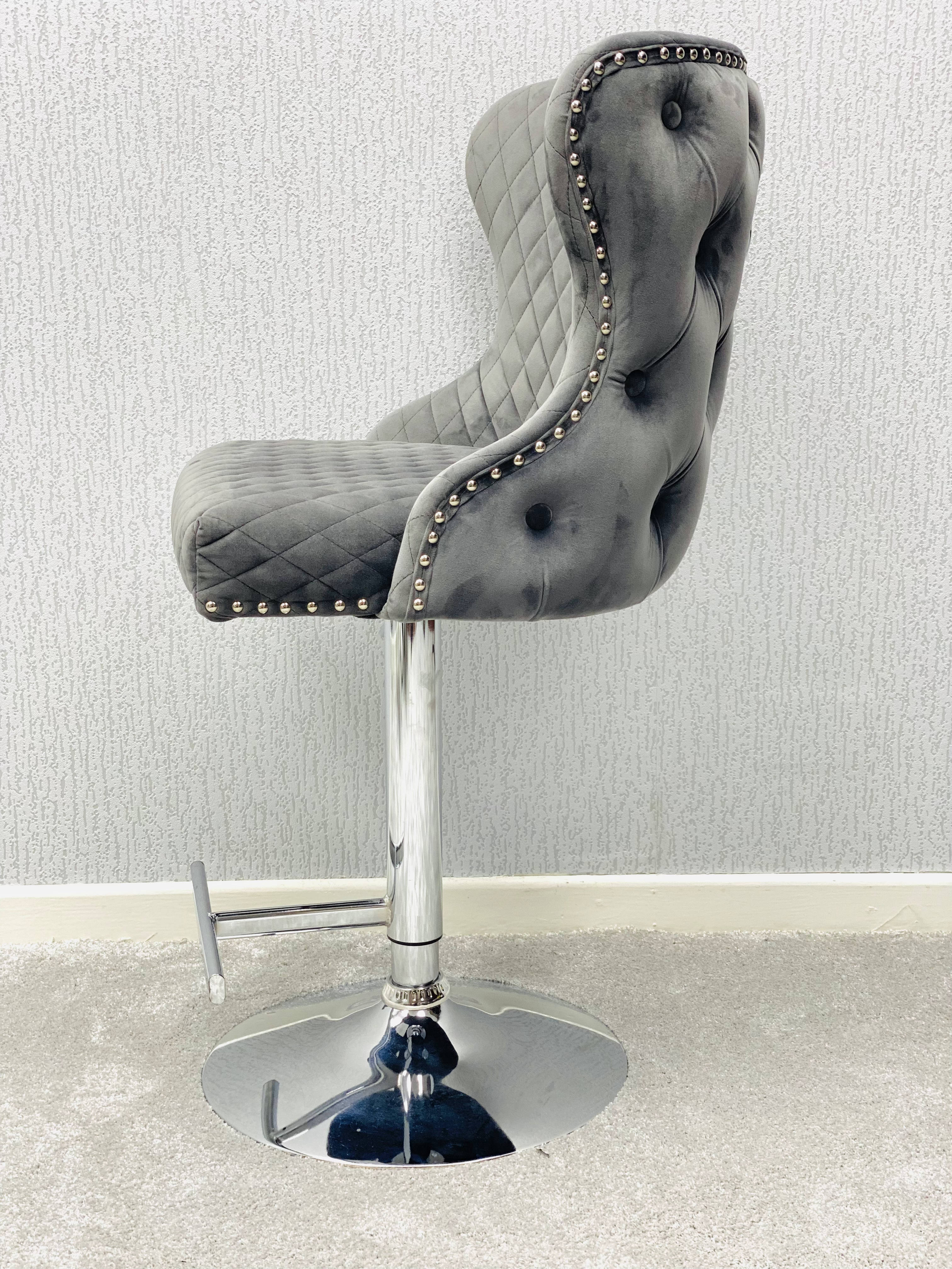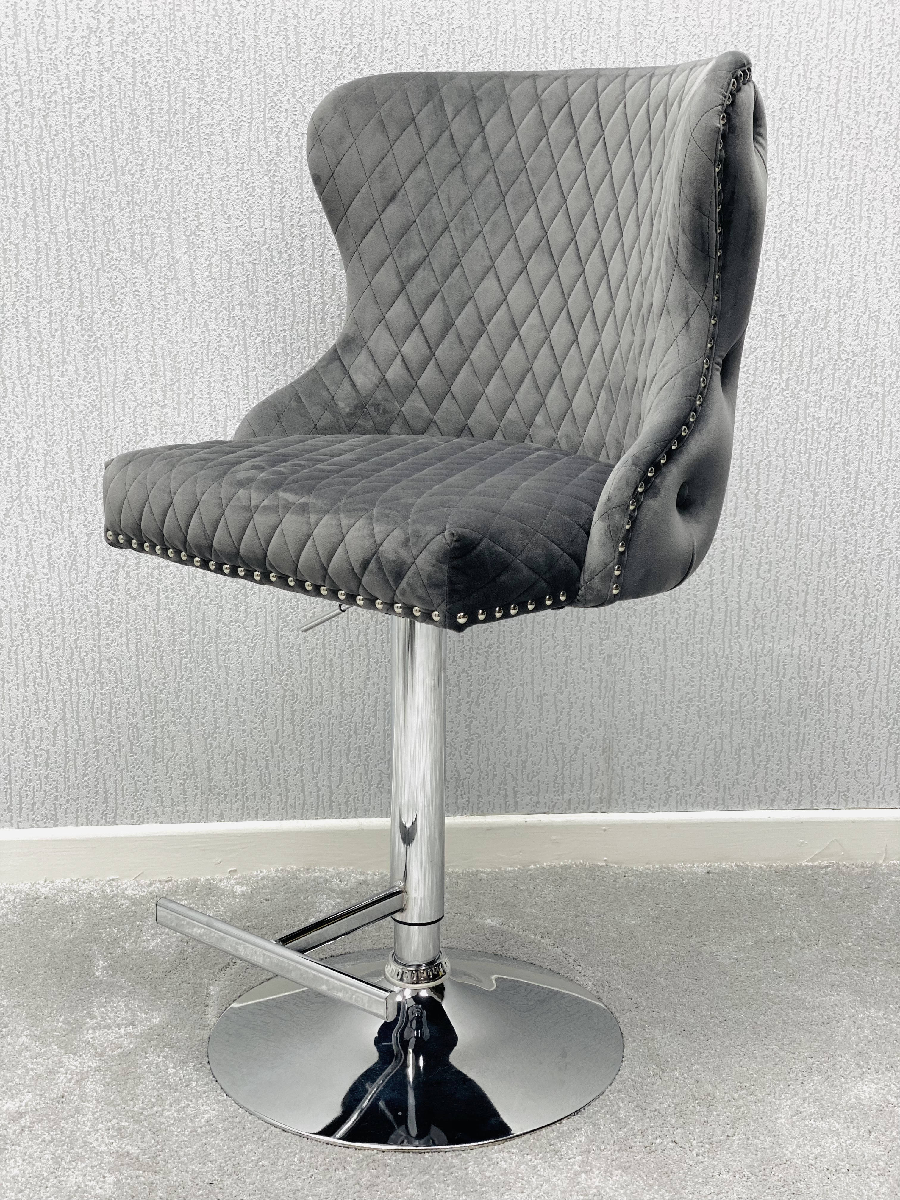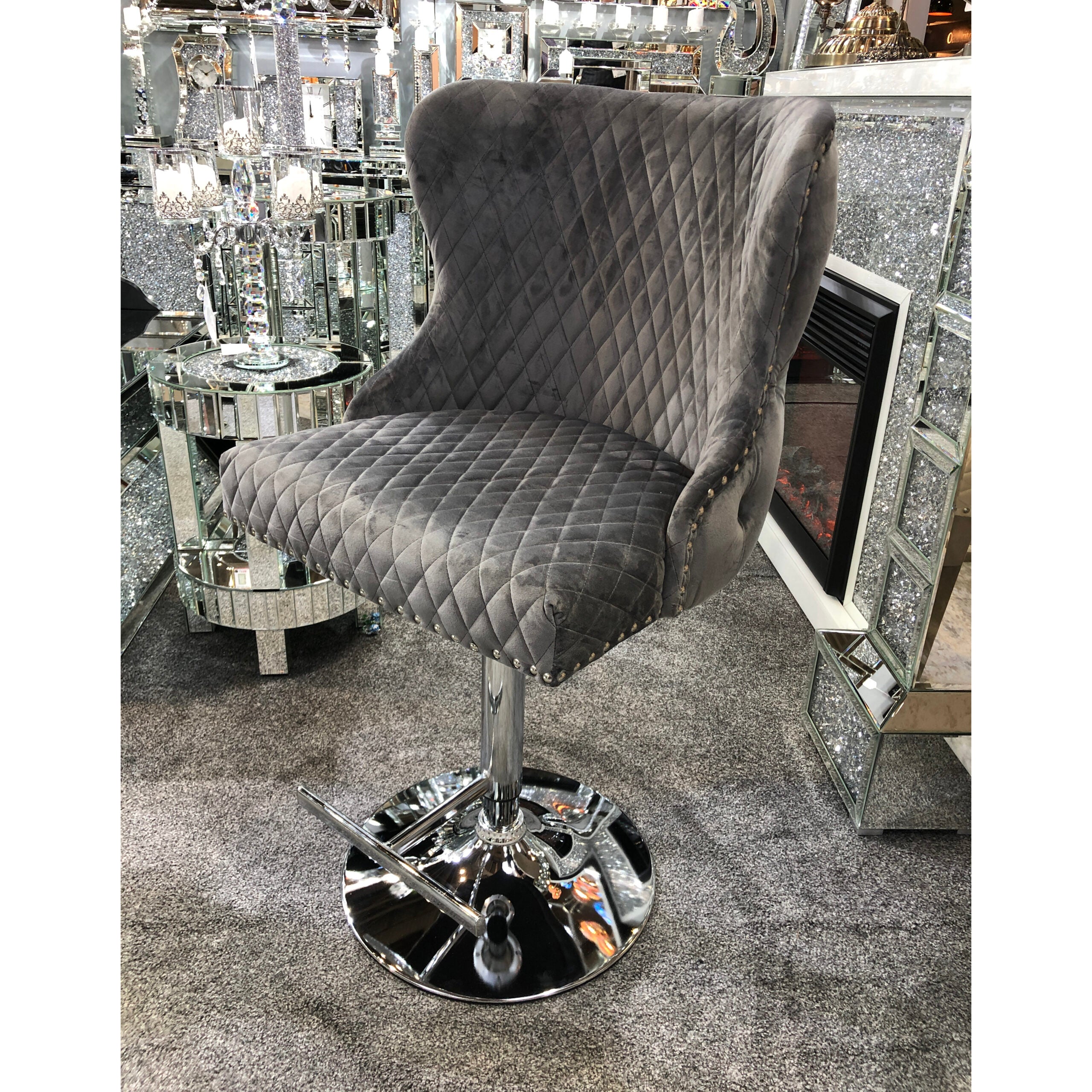 Elevate your home bar or kitchen island with this stunning grey velvet bar stool. Its plush upholstery and sleek design offer both comfort and style, making it a perfect addition to any contemporary space. The adjustable height and swivel feature ensure a custom fit for everyone, providing ultimate relaxation. This stool is a fabulous blend of form and function, ready to enhance your daily living.