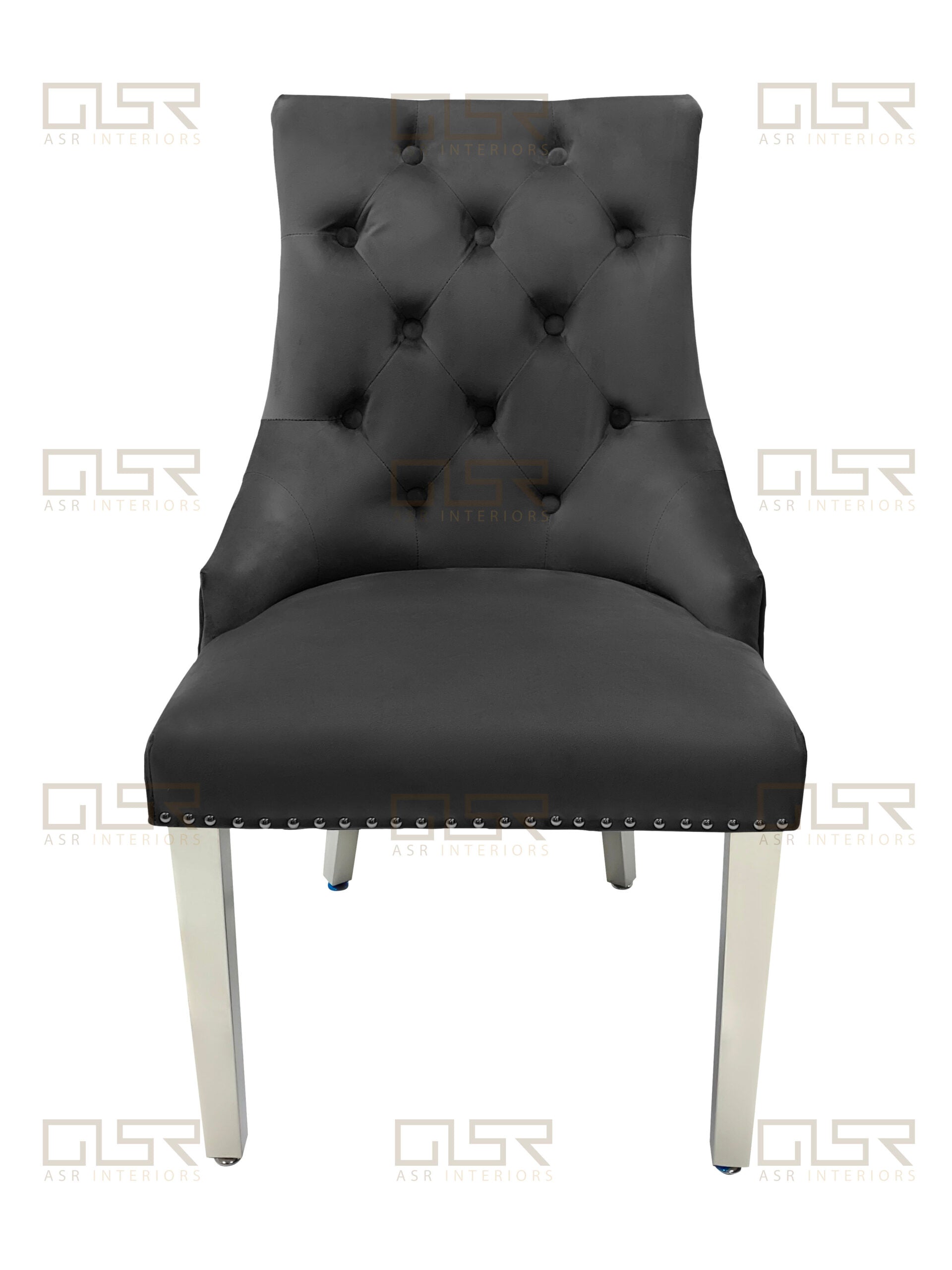 Pair Of 2 Majestic Dark Grey Velvet Tufted Dining Chair
