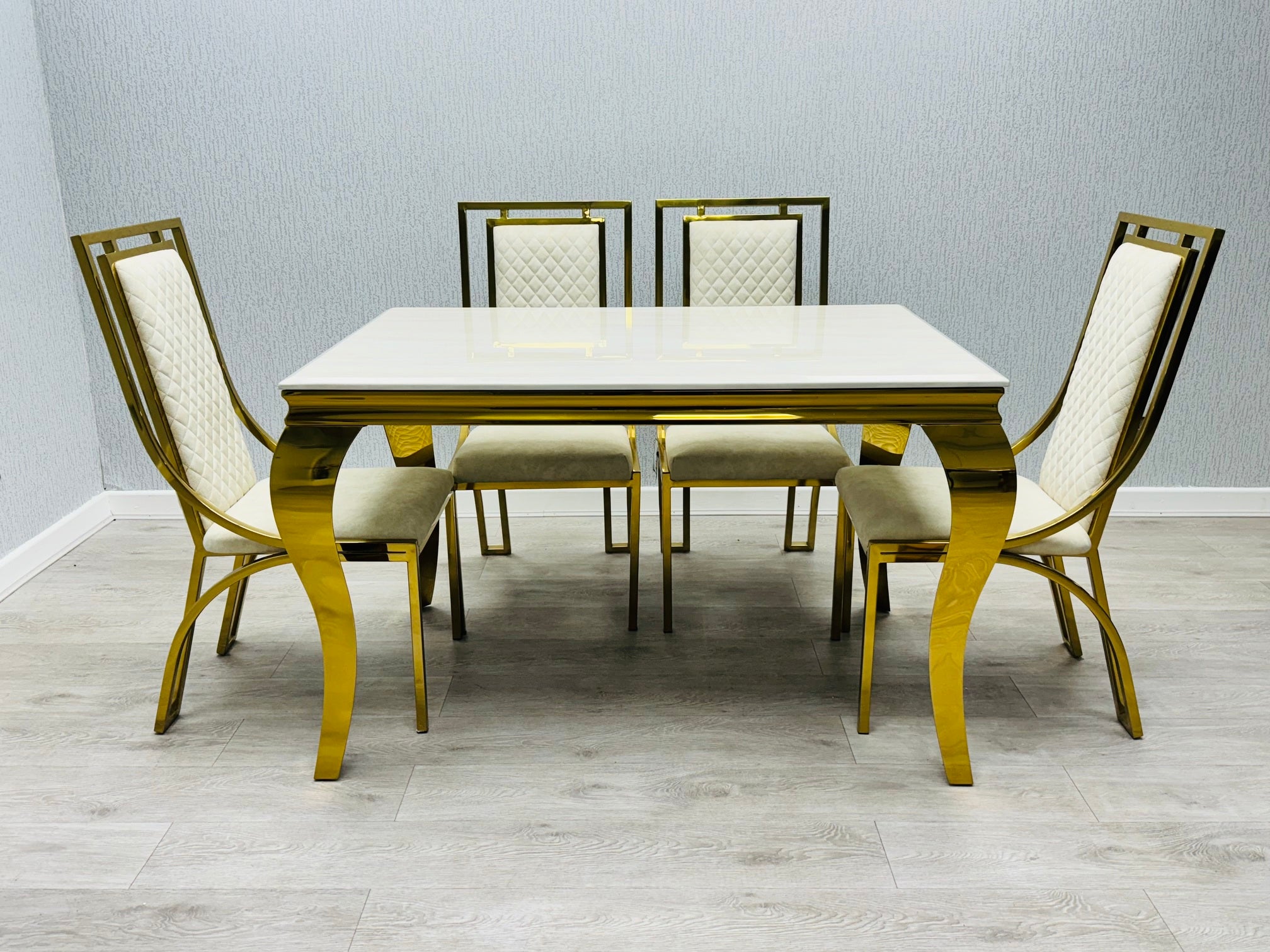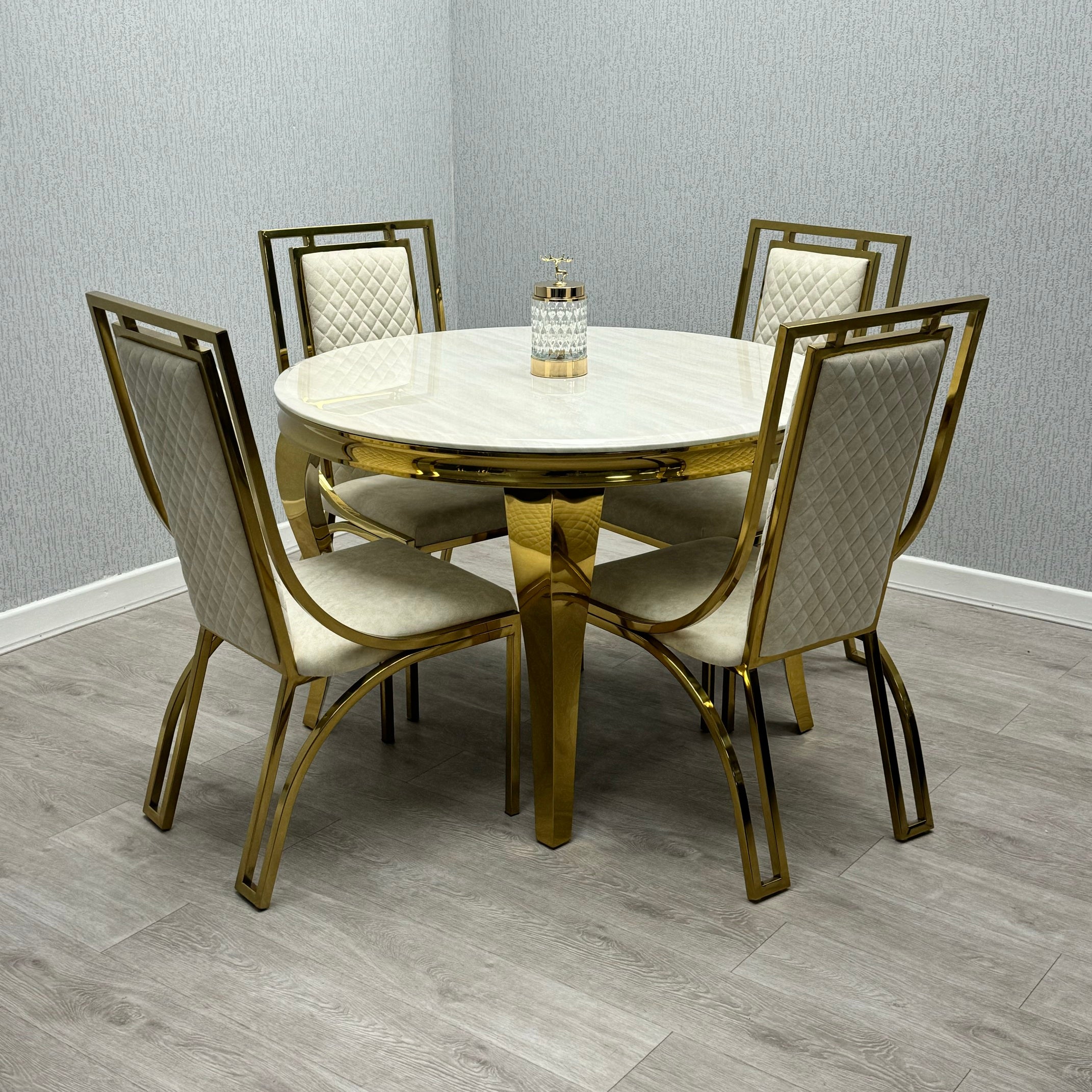 Sofia Cream Gold Marble Dining Table with Windsor Chairs