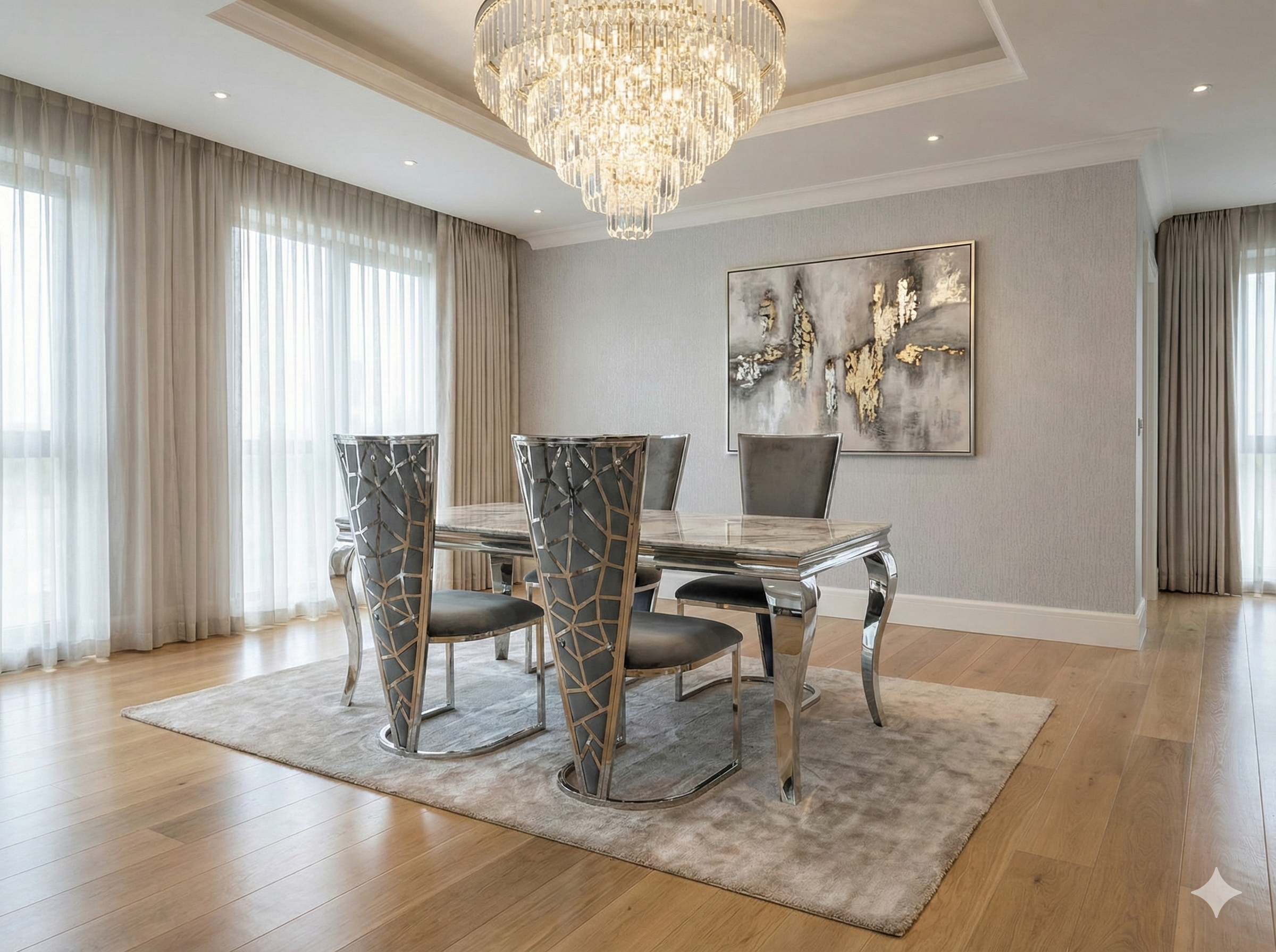 Sofia Grey Marble Dining Table with Vienna Grey Chairs