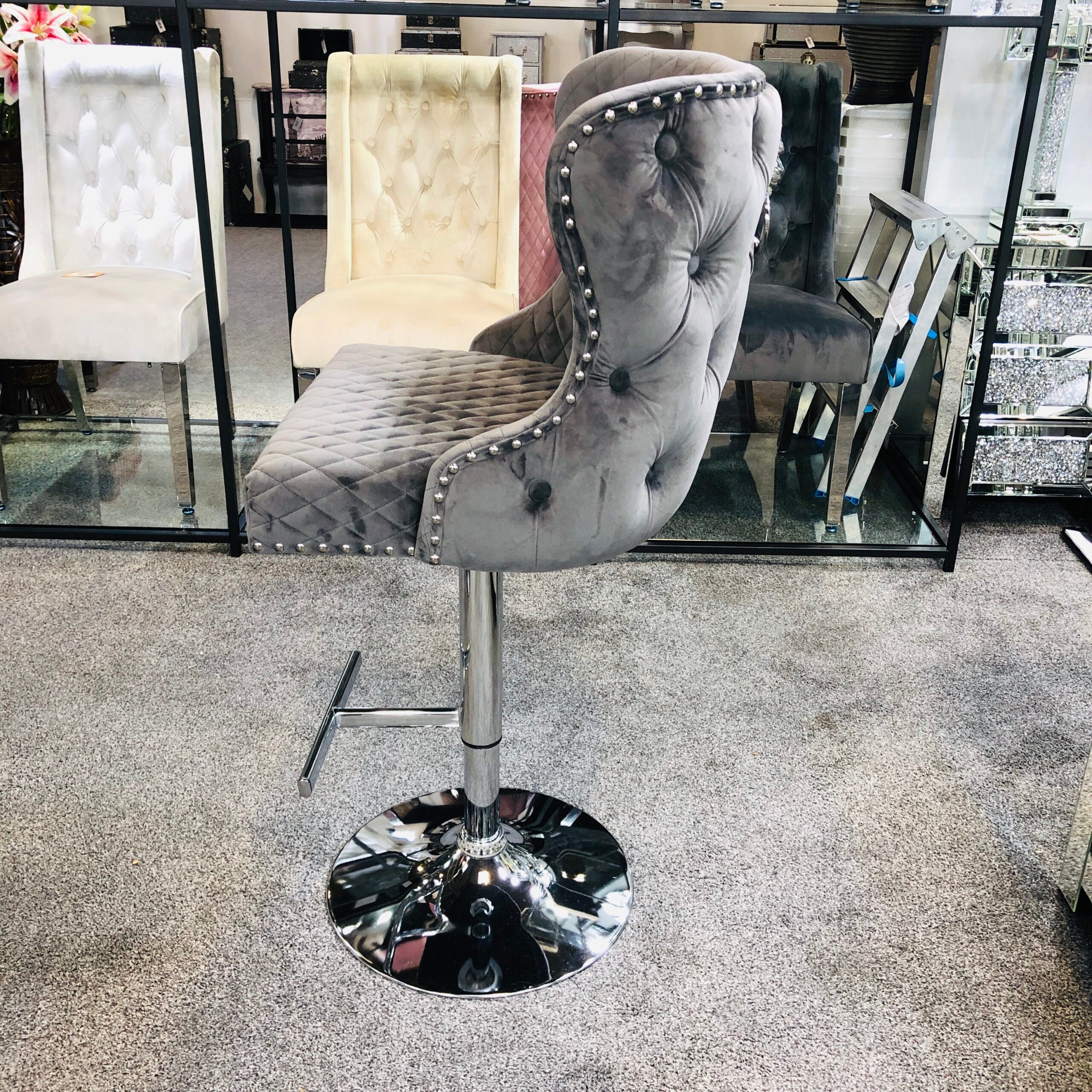 Valentino Grey Velvet Bar Stool with Adjustable Height and Footrest