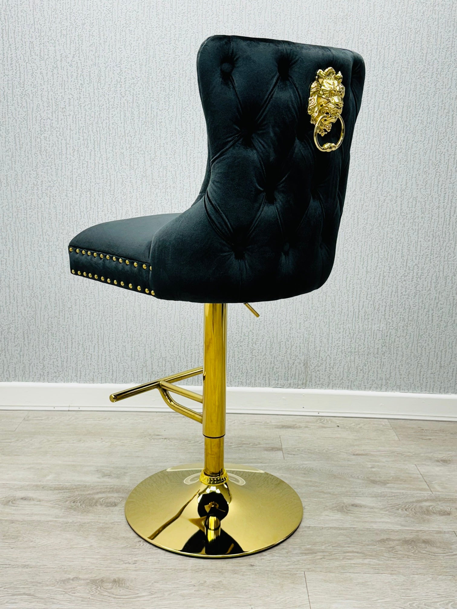 Victoria Black Gold Bar Stool with Lion Knocker